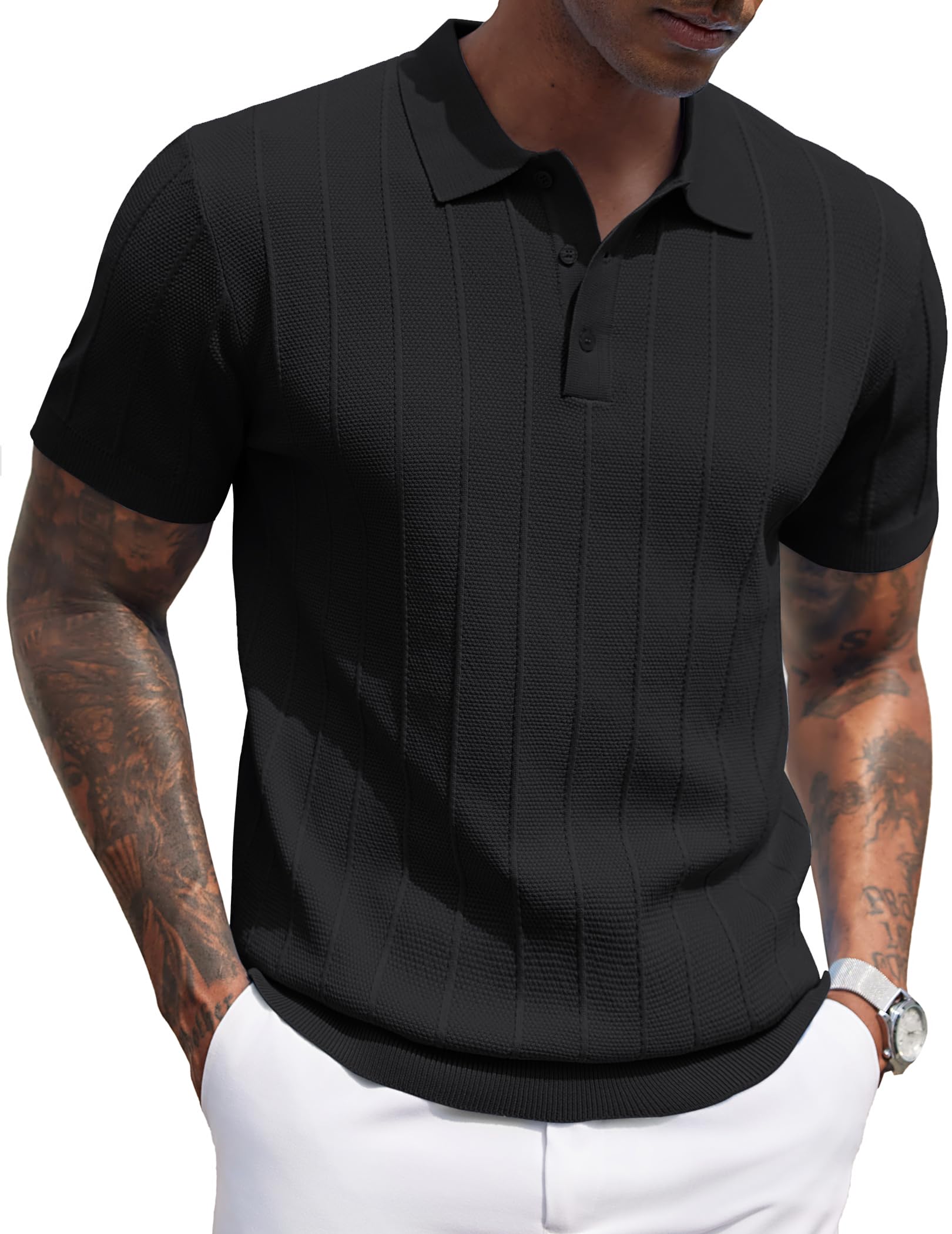 Mens Knit Polo Shirts Short Sleeve Ribbed Textured Polo Shir...