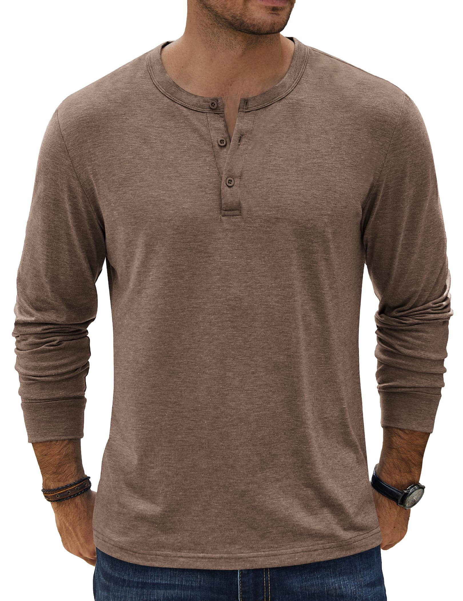 Men's Henley Shirts Long Sleeve Button T-Shirt Lightweight F...