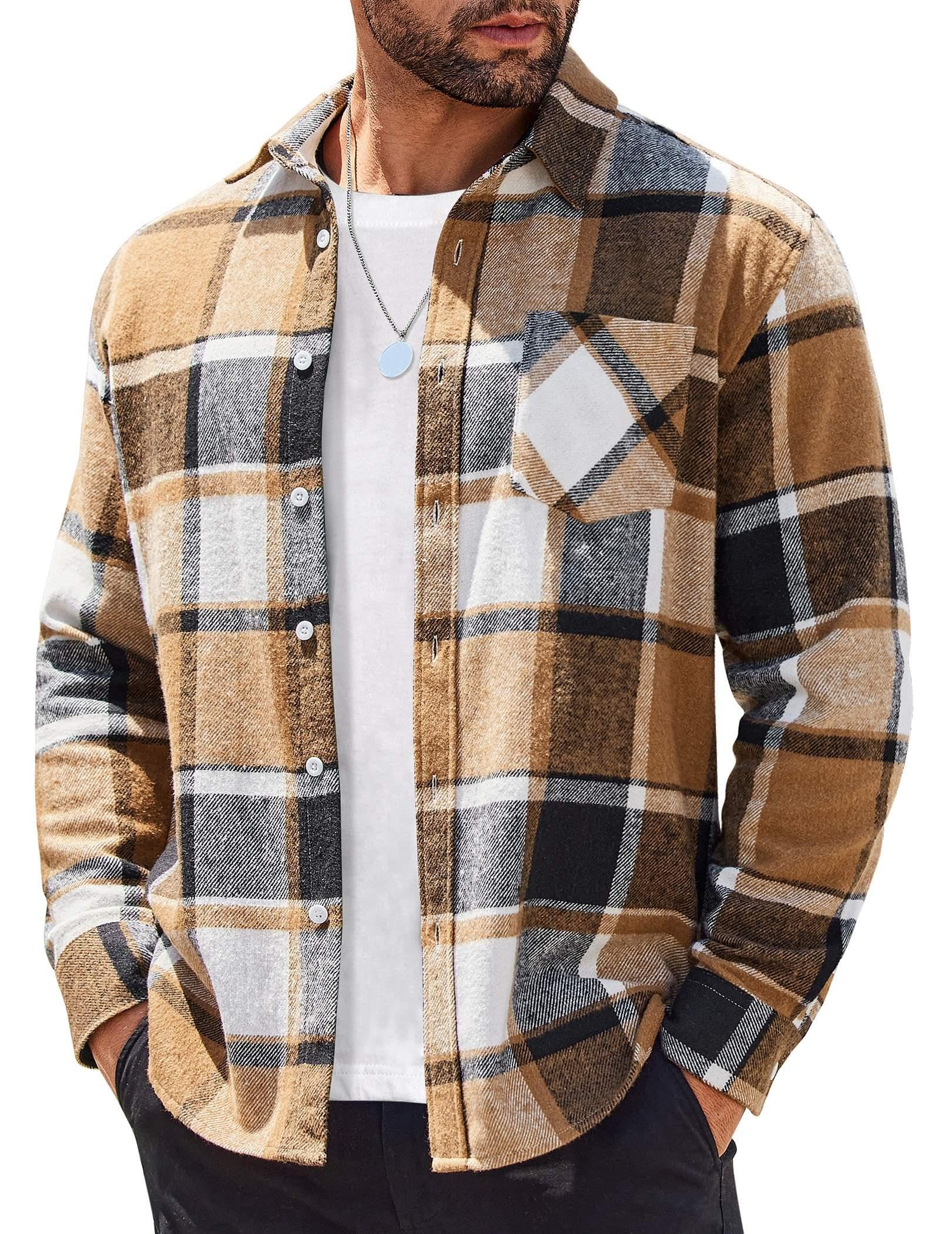 Men's Flannel Shirts Casual Button Down Plaid Shirt Jacket L...