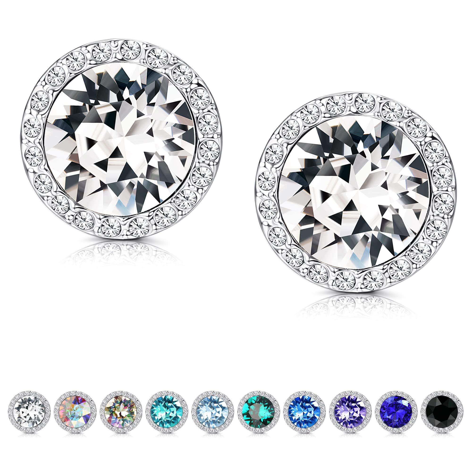 Sterling Silver Crystals Stud Earrings for Women, Made of Au...