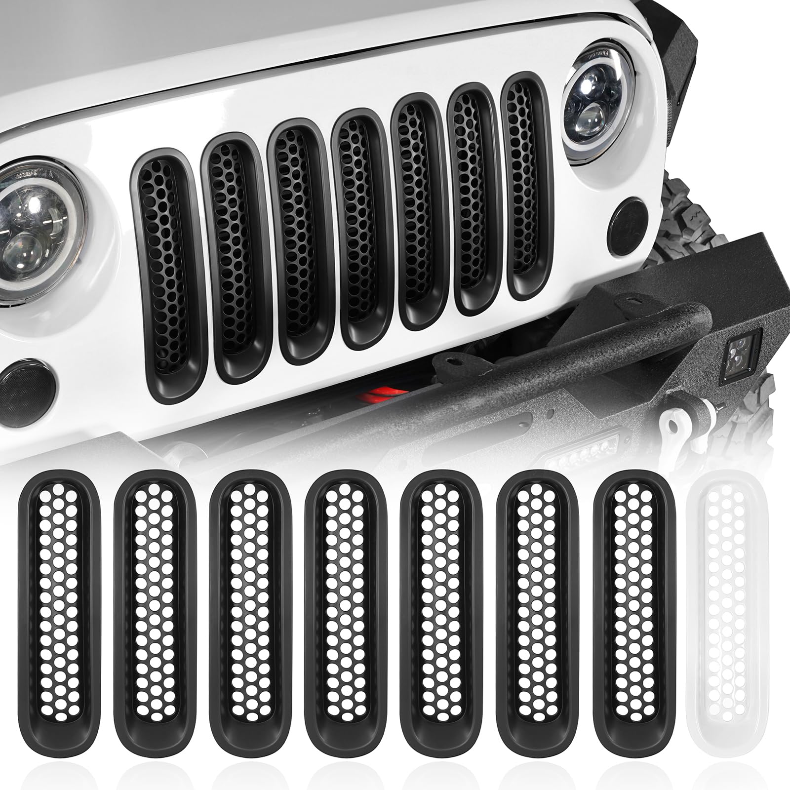 Hooke Road Matte Black Grill Inserts Front Mesh Grille Cover...