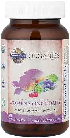 Garden of Life Organics Multivitamin for Women - Women's Once Daily Multi - Whole Food Multi with Iron, Biotin, Vegan Organic Womens Multivitamin for Health, Energy Hair Skin and Nails, 60 Tablets