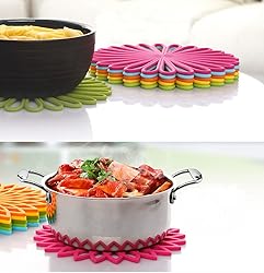 Health Materials:food grade silicone, Cyclic use, low energy consumption, green and environmental; The high-quality silicone material guarantees that they won't absorb odor, stain, rust, crack or chip. Multi-Purpose: The soft and flexible silicone trivets are versatile; Use it as a trivet to protect your kitchen surface from all scalding dishware. They are also suitable for kitchen mats, table mats, bowl mats, dish mats and pitcher coasters. Advantages: The large size: 20 * 0.4 cm/7.87 * 0.16 in; Extreme temperatures range from -40 F to 446 F; And the 3 kinds of flower-shaped model designs decorate your kitchen or other rooms. Easy to Wash and Store: Simply wash it with your hands or throw it into the dishwasher when it need to be washed; The flake is designed for easy overlaying and the hole for easy hanging and convenient storage. PRESENT & OFFERS: Our silicone trivet sets are the perfect baby shower and are sure to be a favorite of any new parent. If you have any question about our silicone trivet or dissatisfaction with our trivet, we will gladly help you solve it.