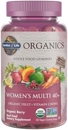 Garden of Life Organics Women 40+ Gummy Vitamins - Berry - Certified Organic, Non-GMO, Vegan, Kosher Complete Multi - Methyl B12, C & D3 - Gluten, Soy & Dairy Free, 120 Real Fruit Gummies