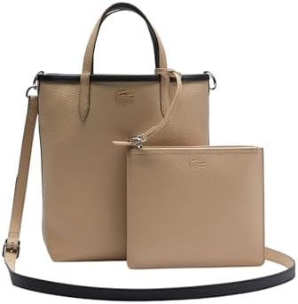 Lacoste Womens Anna Vertical Tote Bag, Black/Warm Sand, One Size