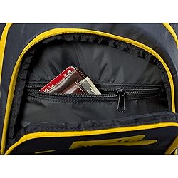 Wilson AVP Beach Volleyball Backpack - Black/Yellow VOLLEYBALL CARRIER: An easy clip-on front panel fits an official size volleyball SIDE CLIPS: Speed clips on the sides of the bag let you air out wet clothes or gear after a practice or day at the beach SPECIALIZED POCKETS: Thermo guard pocket regulates temperature of hot or cold snacks when travelling, while hidden pockets and a laptop sleeve keep your valuables protected SAND PROOF: A convenient sand trap release/vent allows you to quickly empty sand from the backpack without removing and shaking out your gear ALL-SEASON DURABILTY: A durable outer material and base allow for frequent use both indoor and outdoors