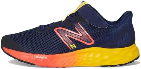 New Balance Boy's Fresh Foam Arishi V4 Hook and Loop Running Shoe, Team Navy/Electric Red/Egg Yolk, 13 Little Kid