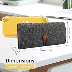 This Pack Contains: one Travel carrying case dimensions: 8.86"×4.34"×1.18" for Nintendo Switch Lite 2019 and some small accessories; along with one protective case with screen protector for Nintendo Switch Lite 2019 Premium quality felt exterior offers great protection against dust, scratches and bumps; Soft microfiber interior protects your Switch Lite from being scratched 5 game cartridges holders are designed on the front of the pouch for storing your game cartridges, allowing you to take and choose your favorite games on the go 10 built-in game card holders keep your games organized, preventing your game cards from dust, dirt or drop 1 big mesh pocket inside provides great flexibility for organizing your accessories, like charger, cable or other small items