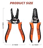 【Multi Functions】 Induction hardened cutting edge stays sharp longer, pliers style nose allows wire stripper to pull and loop in wire, wire crimper crimps insulated and non-insulated terminals 【Stripping Capacity】 This wire stripper quickly strips 10-22 AWG/0.6-2.6 mm solid wire. 【High-Quality Material】Made of high-quality carbon steel which is heat treated, polished, and black oxidation processed, making it more durable and sufficient to deal with hard stripping work 【Soft Grip Handle】Anti-slip TPR handle provides maximum leverage and comfortable grip experience and helps you exert enough force and reduce hand fatigue at the same time 【Wide Applications】Ideal for industrial, electrician and domestic use. It is suitable for stripping, cutting, and insulated terminal crimping of copper wire, aluminum wire, sheathed core wire, cable, multiple sheathed wires, bare terminal