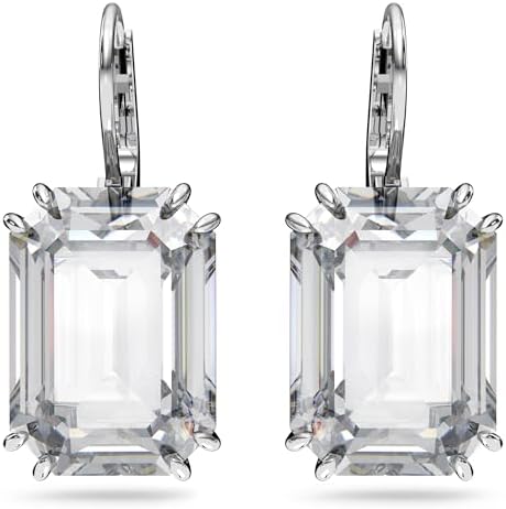 Swarovski Millenia Drop Earrings with Clear Oversized Octagon Cut Crystal in Rhodium Finish