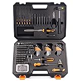 ALL-in-ONE: Our 157-piece multi-function toolset has almost everything you need for convenient and effective repair and maintenance. Including ratcheting wrenches, rubber hammer, long-nose plier, magnetic collector, bit adapters, files & pin punches, magnetic screw retriever, and screw heads in Flat, Phillips, Hex, & Torx styles. Durable & Portable: This toolset is made of strong and sturdy S2 steel. All tools are protected with anti-rust oil to be corrosion resisted for maintenance purposes. The all-in-one box is designed for well-organizing, storage, and transport. Choose the Right: All flat screw heads are hollow-ground to perfectly fit all the screws. We have 54 flat bits differentiated by sizes, enough for you to fix all the weird designs. Incase of working at a very limited space, we have straight ratchet and T-bar ratchet. And we have standard-sized file and mini file sets if you need to handcraft on metal or wood. Need & Get: You might need files, pin punches, and hex keys for repairing but not very often. Think about how many sets you've already bought and where you've left them and how many times you were using a hex key in inches to fix an imported machine that comes with nuts in mm. We collect all of them for you. SATISFACTION GUARANTEED: Our strong warranty and friendly customer service have your six covered. Extra anti-rust oil is recommended for longer-lasting.
