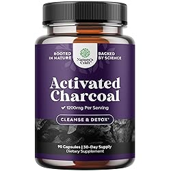 Natures Craft Activated Charcoal Pills Detox & Cleanse - Purifying Coconut Capsules with 1200 mg Per Serving for Bloating Relief - Active Detox Supplement for Body & Gut Health - 90 Count