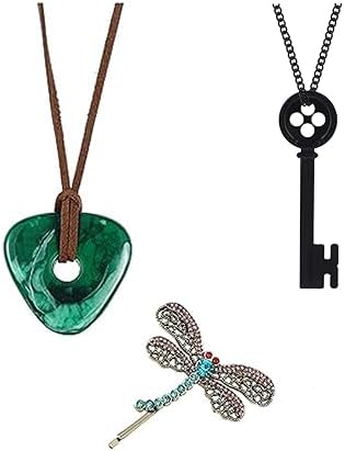 Button Key Necklace Dragonfly Hairpin Green Stone Necklace Costume Accesories for Halloween Cosplay Dress Up