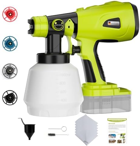 Paint Sprayer for Ryobi 18V Battery, Cordless Paint Sprayer with 1000ML Container, Handheld HVLP Paint Gun Electric Paint Spray for Small Painting Projects: Fence, Cabinets, Chairs(No Battery)