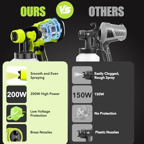 - Wide Applications: At only 2.5lbs, this portable spray paint gun is a convenient alternative to traditional corded paint sprayers, brushes, or rollers. It's great for smaller projects like DIY toys, doors, windows, fences, chairs, benches, desks, cabinets, coops, pet houses, and more, especially with water-based paint. It also work well with stains or varnishes.