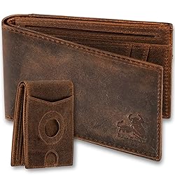 ANTI-LOST WALLET WITH BUILT-IN TRACKER HOLDER: This crazy horse leather men's slim wallet has an integrated holder designed for AirTag. Put your AirTag into the built-in holder case, then you can keep track of your wallet with your phone and you will never lose your wallet again! (Air Tag NOT included) EFFORTLESS ORGANIZATION: Experience unparalleled convenience with our intelligently designed wallet. Featuring six card slots, an ID holder for easy identification, two slide-in pockets for quick access to essentials, one easy-to-access outer card slot with a thumb cutout, and a dedicated pocket for your AirTag, keeping your belongings organized has never been simpler or more stylish. ADVANCED RFID SECURITY: Your security is of concern to us. Safeguard your credit cards and sensitive data from electronic thieves with confidence. Our wallet boasts advanced RFID-blocking technology, shielding your personal information from unauthorized scans by blocking RFID signals of 13.56 MHz or higher. IMPRESSIVE GIFTING: Delight your loved ones with the gift of luxury and security. Crafted from premium crazy horse leather with meticulous attention to detail, this wallet is more than just an accessory, it's a statement of appreciation for style and functionality. GOOD LIFE STORY: Over time, your wallet will weather with age from the adventures taken —reflecting the places you've been, the treasures you've found, and a life well-lived. We believe this bifold wallet will be part of your story for years to come. If you're not satisfied, reach out to us and we'll make it right.