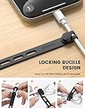 Organization & Portable : These cord organizer cable ties are designed with easy and secure installation in mind, allowing you to quickly organize your cables without any hassle. Just put your cables into the button position, lock and roll it. Say goodbye to the tangled headphones or messy cables in your bag. Save your storage space while on-the-go Reusable Well Made Silicone : Unlike the traditional velcro nylon cable ties which is easily to tangle with fabrics, our cable ties cord organizer strap is made of wateproof, reusable, skin-friendly rubber silicone, ensuring a smooth touch and durable use experience. They are highly durable and maintain their shape even after repeated use, ensuring they won't break no matter how much you stretch them. Not a one-off use, a long-term use! Secure Locking Buckle : With a locking buckle(thickness:0.33") desgin, our silicone cable ties makes you easier to roll the strap to be bundled. The cord tie organizer is more secure while fastening the cables exactly where you want them. Even when loosened, the cords will not eay to fall off 4 Lengths Adjustable & Versatile : Size: 5.12"(L) X 0.47"(W), Bundled Cables Range: Φ0.47"-Φ1.13", With 4 adjustment holes, Our Cable Ties Wire Wraps are versatile and can accommodate various types of wires, from thin phone charging cables, headphone cords to thick eletrical computer power cords. These Cord Organizer Cable Ties are also perfect for use in the kitchen, home, office, car, travel, etc. You can use the cable ties for organizing the clothes hangers, bundling curtains, umbrellas, securing candy and bread bags, and more Warm Tips : Please avoid direct sunlight when using in the car in summer. Do not use this product where the temperature exceeds 50°C. Coming with 10 Pcs cable ties cord organizer straps.