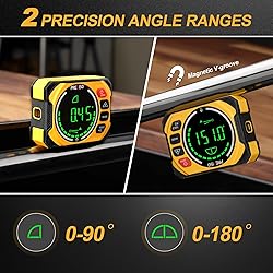 3-In-1 Multifunctional Angle Tool: It combines the functions of a digital level, angle meter, and laser line into one device. Simple one-switch operation powers 3 laser lines on and off, projecting 3 level lines onto the surface; PREXISO allows homeowners to start hanging pictures, mounting frames, and home renovation easily; Class II laser product, maximum laser output < 1 mW 2 Measurement Modes & 4 Units: Turn on the equipment to directly enter the ABSOLUTE measurement mode, and press the ZERO button to switch to the RELATIVE measurement mode. This equipment displays angles in degrees, %, mm / m and IN / FT Accurate Angle: This angle finder tool measures, sets angles, and if a surface is level; PREXISO angle gauge has a higher resolution of 0.05°and higher accuracy of ±0.1°at 0°and 90 °, and ±0.2°at other angles; The measuring range is 0 to 360° (4 x 90°), buzzer will alert when it’s within ± 1° to the horizontal or vertical position Magnetic Base & Auto Reversible Display: The pocket angle finder features a strong magnetic base. When upside down, the LCD display with backlight auto-rotates, ensuring fast and clear reading. TIPS: If the angle gauge is used in an incorrect position (tilts diagonally over 30 degrees), the screen displays ERROR to remind users to use it correctly Bonus Wall Mount Base: Wall mount base helps free hands for marking. It comes with 3 fixing ways: 1. with 2 pins for rough surfaces; 2. with 10 self-adhesive strips for smooth surfaces; 3. with Pin Holes on top for any surface Calibration Function & Wide Application: Mini angle gauge fits in your pocket or the storage bag that comes included to protect the equipment surface from wear; The equipment has been calibrated in the factory. To ensure lasting accuracy, the equipment also has calibration function, so that it can be calibrated by yourself. Digital level angle gauge is designed for daily home repair tasks like leveling pictures on a wall, working with landscape drains and gutters, or measuring pinion angles on a car; perfect for woodworking, plumbing, construction, machinery, telecommunications, automotive, and more