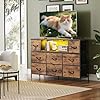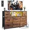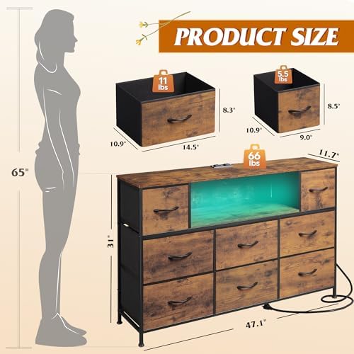 WLIVE TV Stand for 45, 50, 55 inch TV, Entertainment Center with LED Lights & Charging Station, TV Media Console Table with 8 Fabric Drawers and Open Shelves for Living Room, Hallway, Rustic Brown