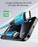 [Charge 58% Faster] The 100W USB C to C tech boosts charging speed, powering your MacBook Pro 16” to 60% in just 45 minutes—58% faster than a 60W cable [Fast Charging for iPhone 16 & Samsung] The upgraded 100W PD cable charges iPhone 16 to 60% in 25 minutes. It also supports Samsung Super Fast Charging 2.0, powering the S22 Ultra to 89% in 30 minutes—45 minutes faster than a 60W cable [Wider Compatibility] With 100W output, this cable supports a broader range of devices, from USB-C phones to iPads, flagship laptops, and Nintendo Switch [20x Durability & Safety] The FLYWEAVE braided design and anti-rupture SR joints withstand 45,000+ bends. The Emark2.0 chip ensures safe charging by automatically adjusting power [What You Get] 6.6ft-Blue USB C to USB C cable*2, cable strap*2, user manual*1, INIU industry-leading 3-year iNiu Care and technical support.