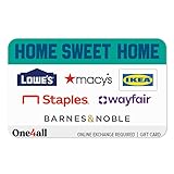 Exchange this Home Sweet Home Choice Gift Card at redeem.giftcards.com for a choice of eGift(s) to spend at one or more of these brands: Lowe's, Macy's, Ikea, Staple's, Wayfair, or Barnes & Noble Give the gift of Home Sweet Home Choice Card! This multi-store gift card is exchanged for eGift cards from any of the brands featured on the card, including Lowe's, Macy's, Ikea, Staple's, Wayfair, or Barnes & Noble The recipient can choose to get an eGift card from all the brands or mix and match their favorites. Redemption: Online at redeem.giftcards.com No Returns or Refunds on gift cards.