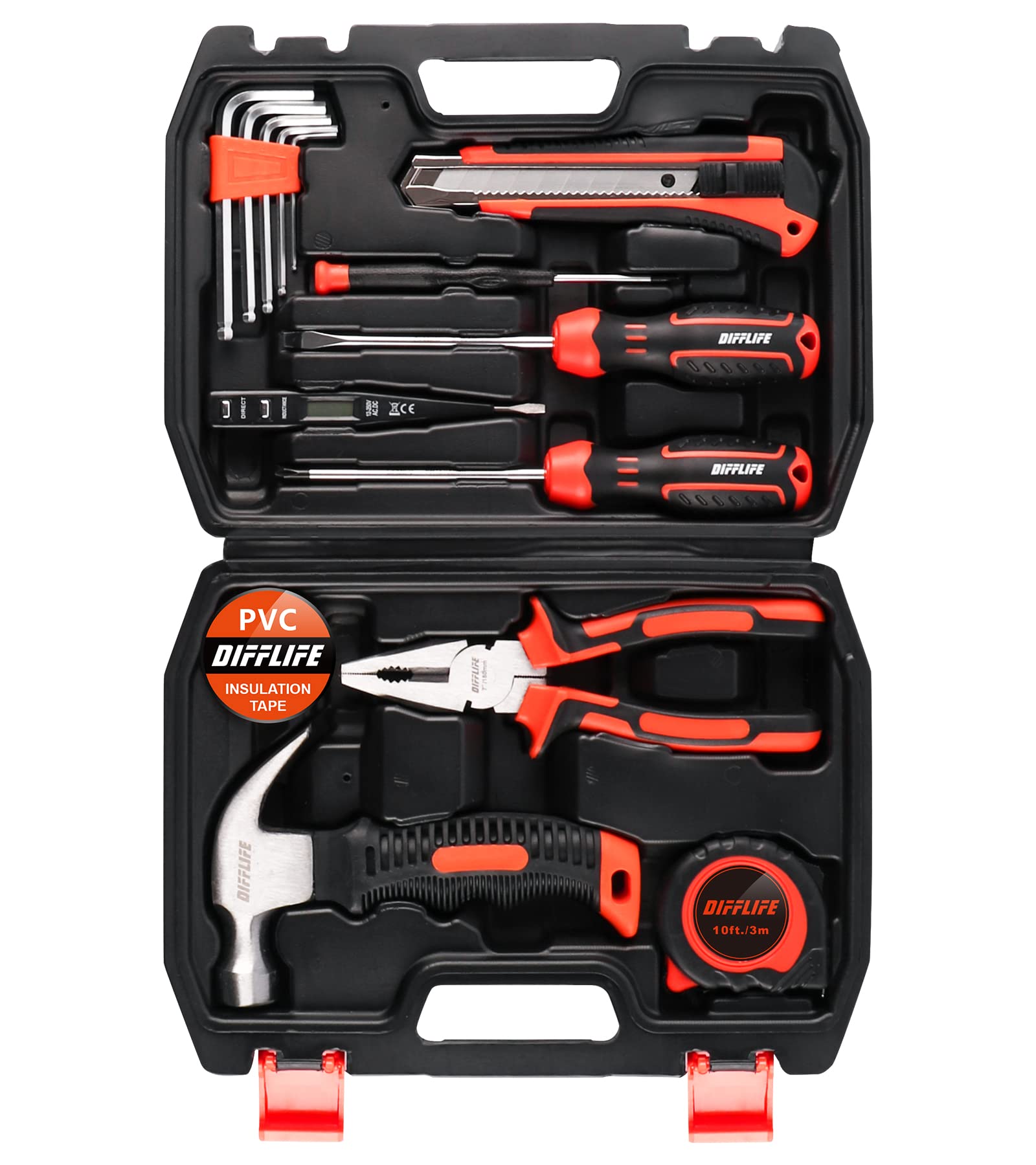 DIFFLIFE Pink Tool Set -131 Piece Pink Tool sets for WomenGeneral Household Hand Tool Kit with Plastic Tool Box Storage Case(Pink)