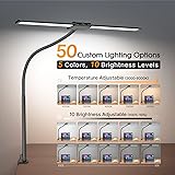 Syrinx LED Desk Lamp for Home Office – Eye-Caring Dual Head Desk Light with Flexible Gooseneck, Clamp, Gesture/Wired Control, 50 Lighting Modes with Memory/Timer for Study, Crafting