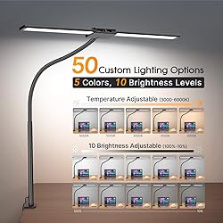50 L𝗶𝗴𝗵𝘁 M𝗼𝗱𝗲𝘀 & 360° F𝗹𝗲𝘅𝗶𝗯𝗹𝗲 G𝗼𝗼𝘀𝗲𝗻𝗲𝗰𝗸 - The desk lamp provides you 50 light modes with 10 levels of brightness and 5 color temperatures (3000-6000K), you can adjust it to you desired lights as you wish by the wired controller. Designed with a 360° gooseneck and 180° foldable swing arms, the gooseneck desk lamp allows to direct the light to anywhere you need. T𝗼𝘂𝗰𝗵 -F𝗿𝗲𝗲 G𝗲𝘀𝘁𝘂𝗿𝗲 S𝗲𝗻𝘀𝗼𝗿 S𝘄𝗶𝘁𝗰𝗵 & W𝗶𝗿𝗲𝗱 C𝗼𝗻𝘁𝗿𝗼𝗹 - Crafted with a distinctive touch-free motion sensor switch, you can effortlessly turn the desk light on/off by simply waving your hand without having to leave your seat. This office desk lamp also features wired control to adjust the color temperature and brightness of the lighting, activate the timer function by a short press, automatically turning off after 15/30/60 minutes. U𝗹𝘁𝗿a S𝗶𝘇𝗲 & F𝗶𝘁 M𝗼𝗱𝗲𝗹𝘀 - Featured with a 23.7 inches ultra wide lamp bar, the desk lamps for home office can fully light up your workspace with enough brightness to complete any task. The suggested max working height is 24.8 inches by this clamp on desk lamp, it provides an ultra-wide illumination range of up to 70 inches, which is suit for all the monitors up to 24.8 inches in height. The desk lamp with clamp is easy to install on desk by a rugged metal clamp, which supports a max 2.95 inches thickness of the desktop. E𝗻𝗲𝗿𝗴𝘆 Sa𝘃𝗶𝗻𝗴 & E𝘆𝗲 Ca𝗿𝗲 - Consuming 80% less energy than traditional bulbs, this led desk lamp is composed of 96 high quality lamp beads, highly energy-efficient and eye-caring. The modern desk lamp has uniform brightness, wide lighting range, no strobe, no blue light hazard, no glare, soft light, protecting you eyes from fatigue. P𝗿𝗼𝗺𝗽𝘁 US L𝗼𝗰a𝗹 P𝗿𝗲𝗺𝗶𝘂𝗺 S𝗲𝗿𝘃𝗶𝗰𝗲 - Our LED desk light undergo rigorous quality inspections before export. You will enjoy a worry-free-3-month return policy and 12 months technical support. Please feel free to contact us for help if any questions about the desk lamps for office, our US local team will provide the most prompt solution.
