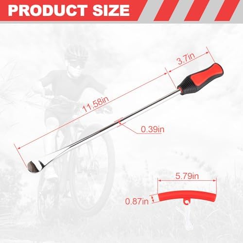 - DESIGN: Tire removal tool 15 inch length gives extra leverage, simplifying tire removal/installation to save time. Ergonomic non-slip grip eases extended use, reducing fatigue. Rounded edges prevent pinching inner tubes, keeping tires safe