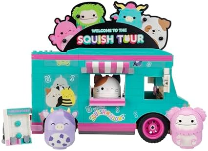 - SQUISH VAN DISPLAY SET Hop on board a very ‘Mallow road trip with the Squishmallows Squish Tour Van Building Set, a buildable display featuring Squishmallows favorites Cam, Bubba, & Brina!