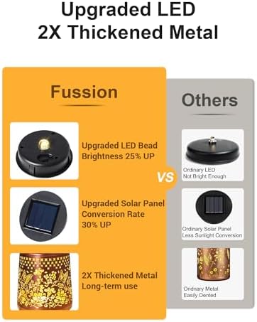 - 【Enhanced Brightness & 2X Thickened Metal】- Enjoy brighter and more vivid illumination with upgraded LED bead that provide 25% more brightness than traditional models. The delicate hollow out metal veneer ensures the Hummingbird pattern is displayed with stunning clarity. Made from 2X thickened metal, these solar lanterns for porch are built to last, offering exceptional durability and resistance to bending or denting. Additionally, the solar panel power efficiency has been improved by 30%, improve energy conversion for longer lighting time.