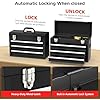 - ✅【Enhanced Security】Rest easy knowing your tools are safe and secure. Our Gornoxblif tool box with drawers locking mechanism can be used without a padlock. Drawers can be locked automatically when the toolbox top lid is closed. This function prevents drawers from slipping out when being carried and for more effective tool storage. Plus, protective liners in the top tool tray and drawers prevent scratches and damage to your valuable tools. Note: Before activating the automatic lock device, all drawers must be completely pushed in and closed to be locked.