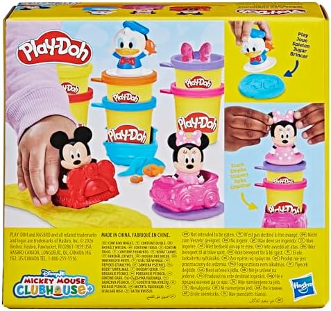 Imaginative adventures await with Mickey, Minnie, Donald, and the Stamp & Go Megapack! This mini Disney playset has 3 toy figure stampers, 3 vehicle stampers, and 6 Play-Doh colors for easy sharing or take-and-go fun. Mickey stamps the iconic mouse ears under his feet and his train toy stamps train tracks on the bottom. Minnie stamps her bow under her feet and her car toy stamps a different bow pattern on the bottom. The figures can sit in their vehicles and on top of the cans, or kids can stack them all together. Inspire kids arts and crafts activities and give a great toddler gift for non-candy Easter basket fillers, back to school gifts, and more. Copyright Disney. PLAY-DOH and HASBRO and all related trademarks and logos are trademarks of Hasbro, Inc.