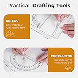 Complete Compass Geometry Set – This all-in-one compass geometry set includes 3 types of compasses (study, graphic, bow), 1 divider, extra lead & needles for compass, 2 protractors (standard and swing arm), a 6” ruler, 2 triangle squares (45°, 30°/60°), 2 mechanical pencils(0.5 & 0.7mm), 2 graphic pencils, erasers, lead refills, and a pencil sharpener, all neatly packed in a durable storage case. Ideal for students for school math or drawing tasks Compasses for Smooth Drawing – High-quality metal compasses designed for accuracy and long-term use, create circles up to 6 inches in diameter. One of the compasses includes an adjustable pen holder, offering greater flexibility for precise arcs and curves in drafting, design, and geometry work Drafting Tools Kit for Students – Equipped with all the drafting tools needed for school or office use, including protractors, ruler, triangle set squares, and mechanical pencils. All tools are clearly marked with inch and centimeter scales, making them practical and easy to use for math, geometry, or engineering Compact & Portable Design – All geometry tools are securely stored in a lightweight, compact case, making it easy to organize and carry anywhere. This makes the compass geometry set perfect for classroom use, homework, on-the-go study, or professional drafting tasks Multi-Purpose Set – This geometry and drafting tools set is perfect for multiple applications such as schoolwork, exams, architectural sketching, woodworking or artistic design. A thoughtful gift for students during back-to-school, birthdays, holidays, or Children’s Day