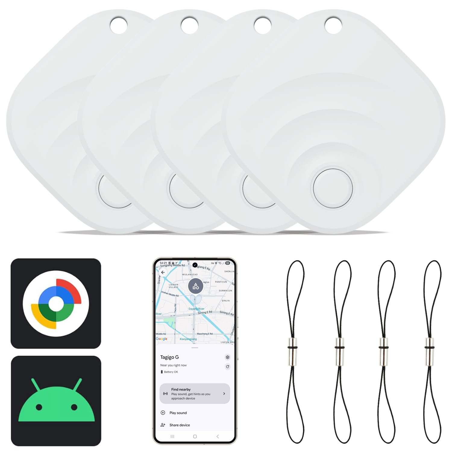 2025 New Android Air Tracker Tags-4 Pack for Both iOS & Android Phones, Dual System Bluetooth Tracker Compatible with Apple Find My (iOS) & Google Find Hub (Android) Device for Luggage, Keys, Backpack