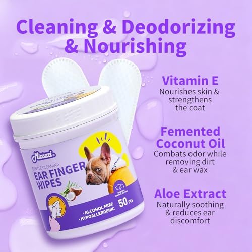 MIOSSZI Pet Finger Wipes for Dogs & Cats - Dog Ear Cleaner for Itch Relief Remove Wax & Odor, Dog Ear Cleaning Finger Wipes-Pet Ear Finger Wipes 50ct