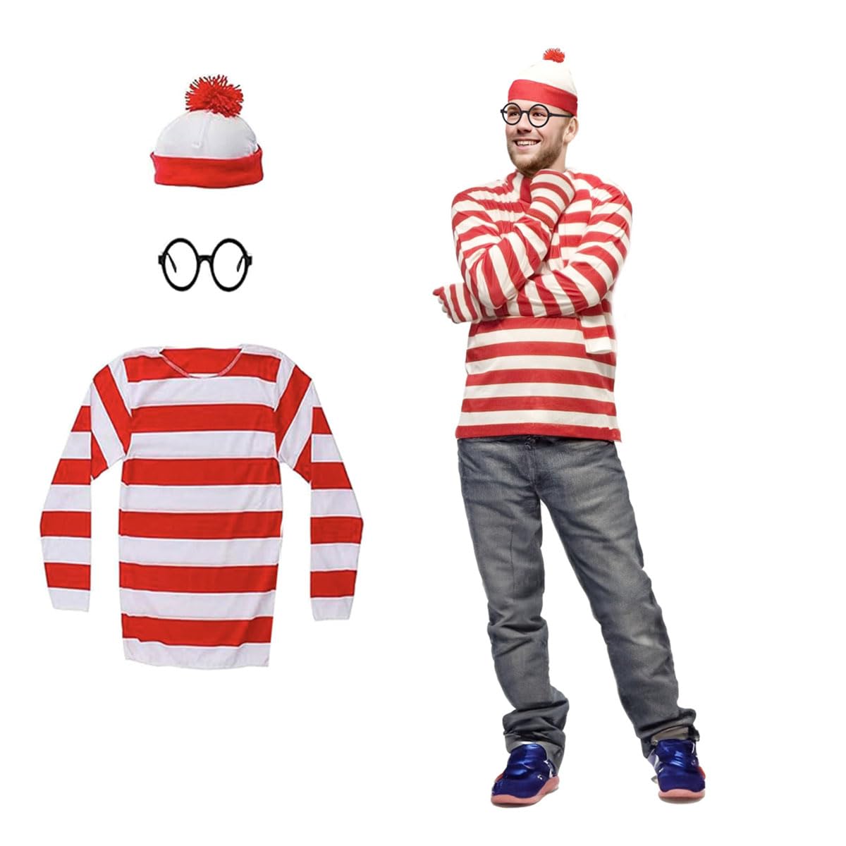 Adult Red and White Striped Shirt Outfit Halloween Cosplay C...