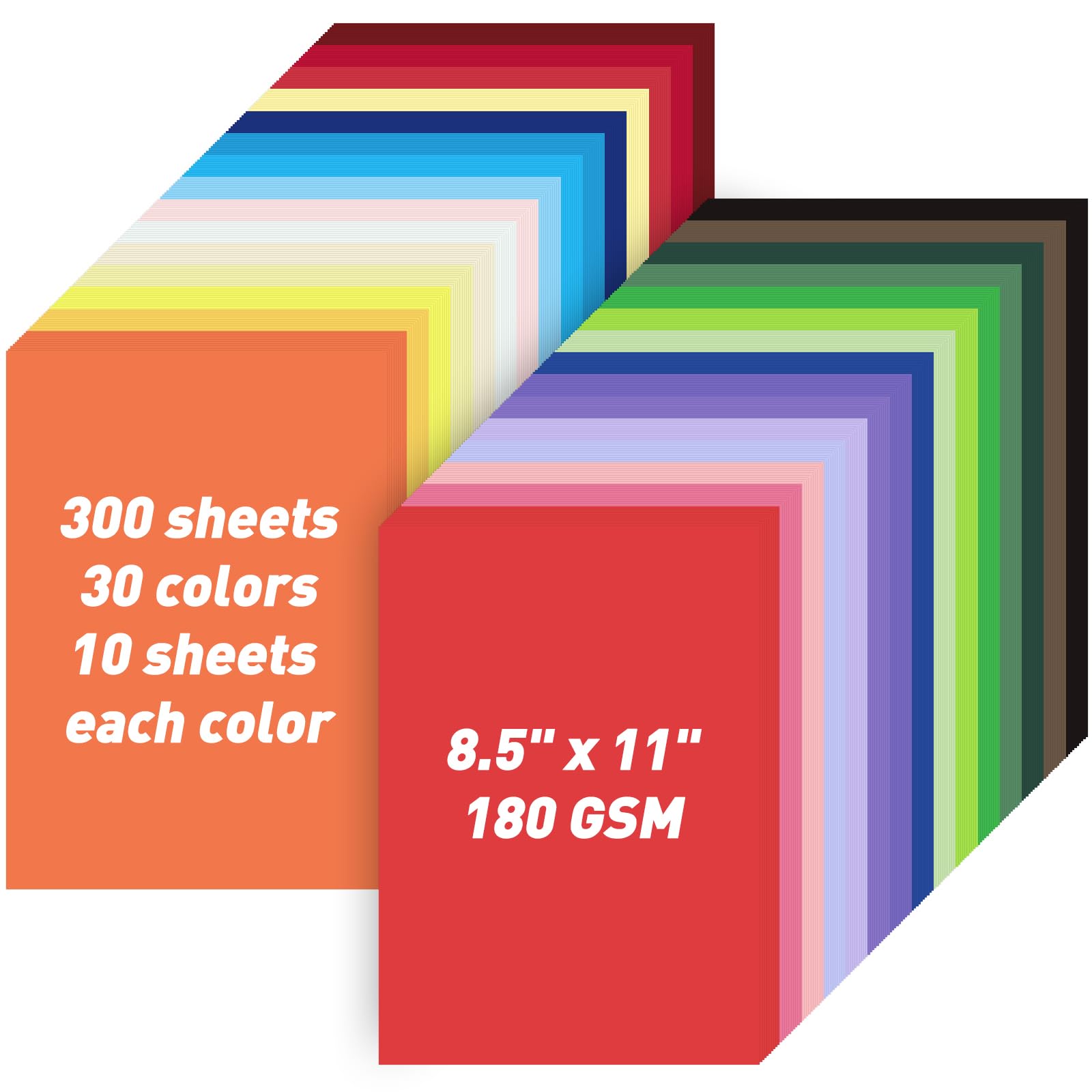 8.5" X 11" Colored Cardstock Bulk 300 Sheets 30 Assorted Col...