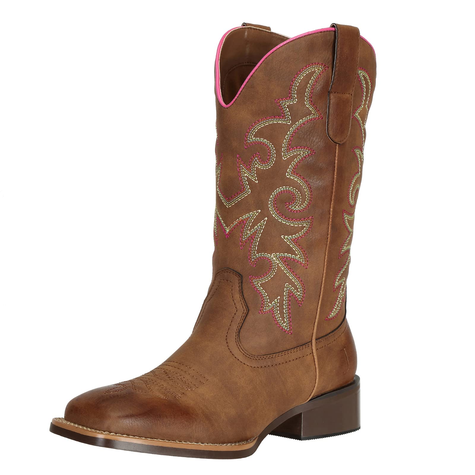 Women's Square Toe Cowboy Cowgirl Boots Embroidered Mid Calf...