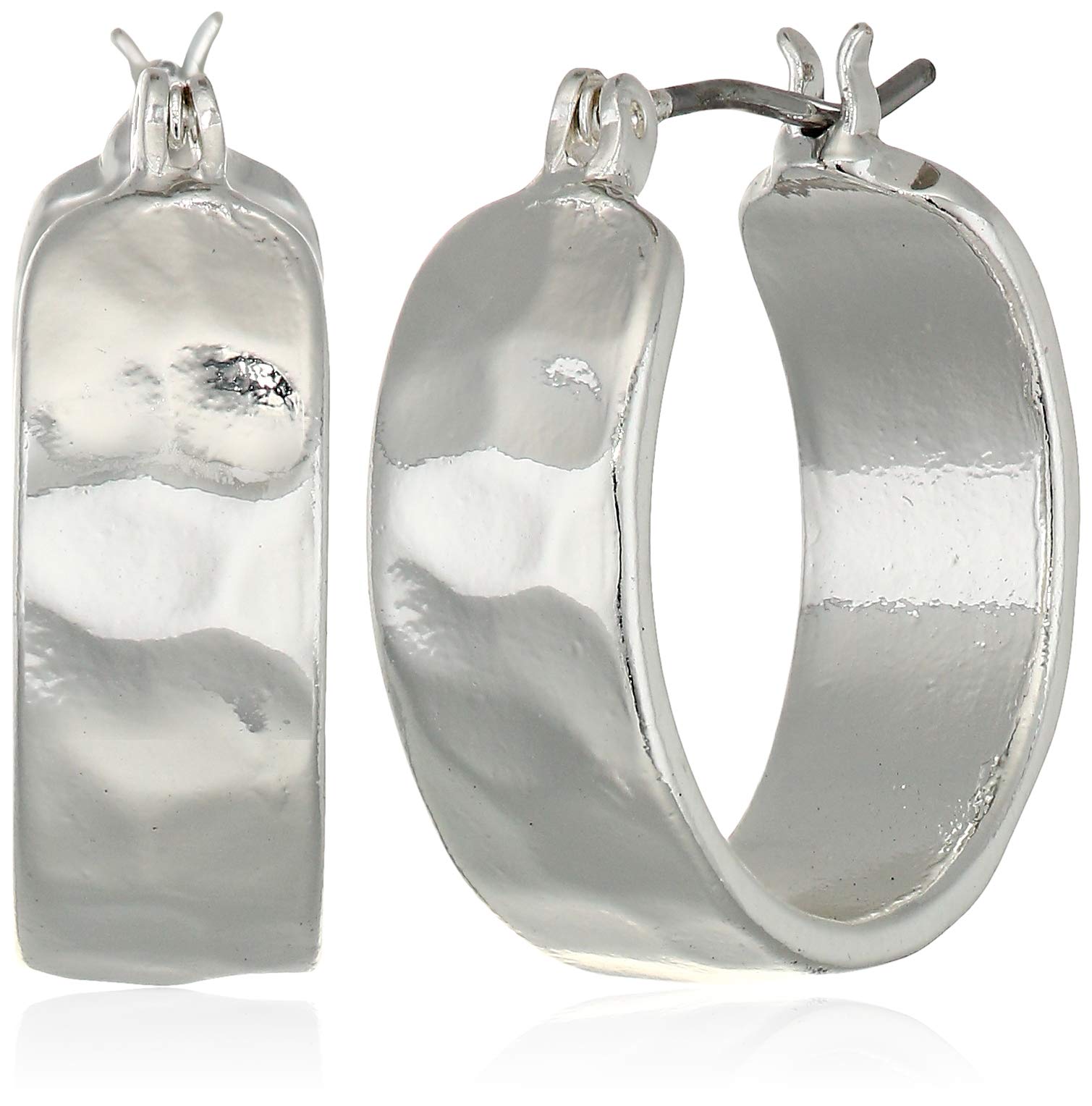 Women's Wide Small Textured Hoop Earrings Silver Tone