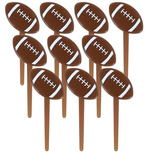 - TOUCHDOWN PARTY ESSENTIAL: Make a bold statement at your next game day party or sports-themed celebration with our Brown Football Plastic Picks (3") - Pack of 36 - Durable, reusable, and designed to capture the essence of football excitement!