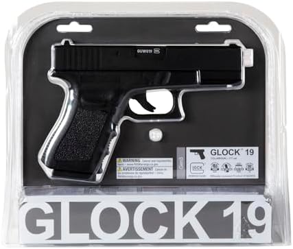 The Glock 19 .177 caliber air pistol is ideal for a more versatile role because of its reduced dimensions when compared to the standard sized option. It is compact and handy, with the unmistakable look of the original and plenty of power. In spite of its relatively small length of 7.25 inches, it shoots .177 caliber steel BBs with a velocity of up to 410 FPS and weighs a satisfying 25.6 ounces. In true Umarex form, it has a metal slide and a trigger safety. Officially licensed product of Glock.