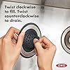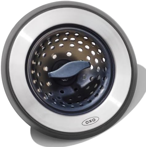 Looking for a sink strainer that goes above and beyond? The OXO Good Grips 2-in-1 Sink Strainer & Stopper does double dish duty. Use it as a strainer to effectively trap food scraps, or as a stopper for hand washing dishes. The durable silicone basket prevents clogging and flips inside out for easy emptying. To fill your sink, twist the tab. Twist again to drain. The stainless steel exterior is stain resistant, while the soft silicone underside won’t scratch your sink.