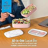 All-in-One Convenience: Forget packing multiple containers or searching for utensils! This bento box includes a built-in utensil set, three separate compartments, and a durable nylon strap, all securely held together for quick, hassle-free meals on the go. Premium, Stylish Design: Crafted from high-quality, food-safe materials, this sleek, minimalist lunch box is available in modern hues. It combines style with eco-friendly functionality, reducing single-use plastics while offering a convenient alternative to traditional lunch boxes. Compact & Space-Saving Storage: The top container nests inside the bottom for easy, efficient storage, making it perfect for compact spaces. Whether at home or on the go, it stores easily and takes up minimal room in your bag, backpack, or kitchen. Durable & Lightweight: Built for everyday use, this stackable lunch box is both durable and lightweight, making it easy to carry in your bag or backpack. Whether you're heading to work, the gym, or traveling, it provides convenience without adding extra bulk or weight. Microwave & Dishwasher Safe: The main containers are microwave- and dishwasher-safe (excluding the lid, divider, and strap), offering hassle-free heating and cleaning. Ideal for meal prep, snacks, or lunch, the stackable compartments and removable tray divider allow you to customize portions.