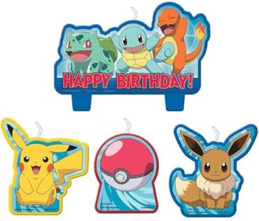 Gotta catch 'em all! Add an extra dose of fun to your parties with this cool Pokemon birthday candle! Celebrate your little kid's birthday in style! The pack includes three character candles featuring beloved Pokemon characters and icons: Eevee, Pikachu, and a Pokeball! It also includes a larger candle that says "HAPPY BIRTHDAY! " with Bulbasaur, Squirtle and Charmander. It's super easy to add to your cake, and comes ready to use. It's perfect for your kid's birthday celebrations!