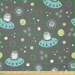 Ambesonne Dusty Blue Fabric by The Yard, Space Cat Astronauts and Solar System Elements Funky Pattern, Stretch Knit Fabric for Clothing Sewing and Arts Crafts, 1 Yard, Grey and Multicolor