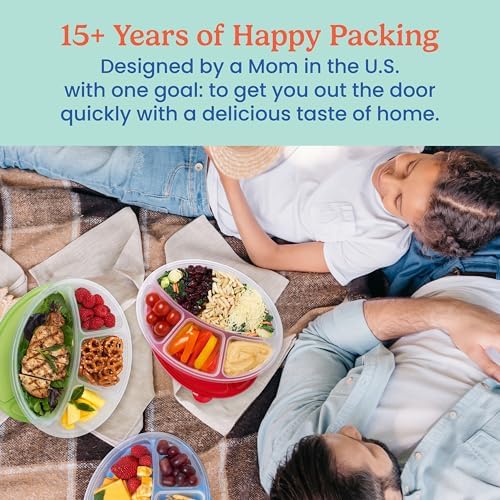 - Patented Design: Created by a Mom who thought of everything—even how to save space in your home! Our 4-compartment food containers are an original, patented design that is stackable, portable, reusable, and easy for prepping healthy meals for school, work, or on the go. Stack them together for compact storage in the fridge and freezer, or nest together to save space when empty.