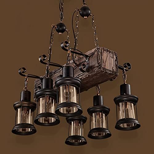 LightInTheBox 6-Lights Retro Farmhouse Chandelier, Industrial Wood Beam Pendant Light Metal Glass Lampshade Hanging Lighting Fixture for Kitchen Island Pool Table Bar