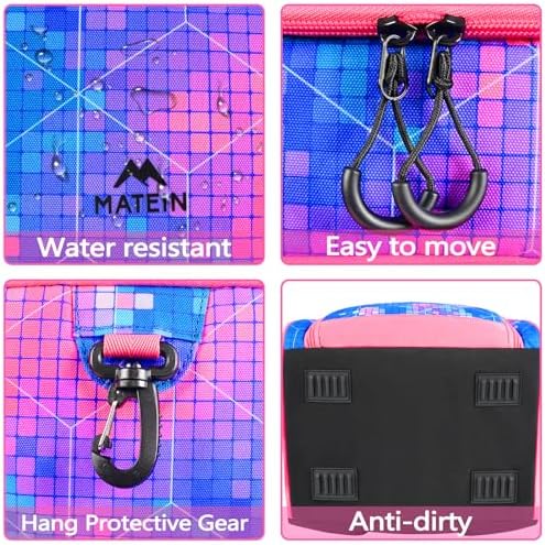 - Exquisite Design: The smooth double zipper is made of Non-slip PVC grip and sturdy nylon cord, makes the soccer backpack more convenient to use and prevent from skidding. The glasses belts on the shoulder straps ensure hanging glasses easily. And the hook on the front of the colorful soccer bag allows you to hang anything you want, such as water bottles, keys, and more accessories