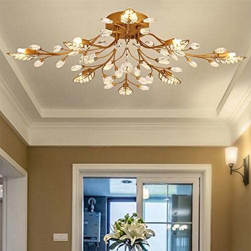LightInTheBox Vintage Brass Crystal Branch Chandelier Flush Mount Crystal Ceiling Lights Fixture Tree Leaves Pendant Light for Living Room Dining Room Bedroom